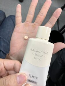 化粧下地やファンデーションの使用量が思っていたより少なくて驚きましたが、同じようにやってみると今までで一番綺麗に塗ることができました。その後もナチュラルメイク用のポイントメイクについて詳しく説明があり、化粧品を使って楽しく学びました。