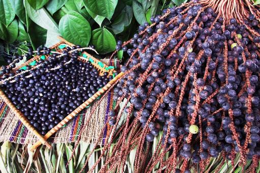 この「アサイー」とは、アマゾンを原産とするヤシ科の植物に生る実のことで、高い木に紫黒色の実が沢山ついているそうです。産地では8月頃から収穫が始まり、実の果肉から搾汁して加工したピューレが作られます。そのままの味は甘みや酸味が少なく、ほんのりとした渋みと土やナッツのようなコク、オリーブオイルに似た風味があります。もともとブラジルでは伝統的なアサイーの食文化があり、デザートだけでなく主食としても食べられているそうです。