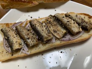 「ボカディージョ・デ・サルディナス」は、スペインで親しまれているバケットサンド「ボカディージョ」の1種で、イワシの缶詰と野菜を挟んだシンプルな軽食だそうです。手軽で安価なため一部では「最も嫌いな世界の料理にえらばれるそうです。