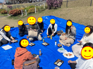 私は、お花見に参加させていただきました。今年は桜の開花がだいぶ早く、最初は15日に開催される予定だったのが8日に前倒しになりました。