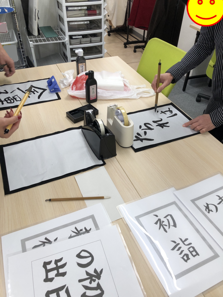 初詣に行かれた方は時間が過ぎたので書けませんでしたが、皆さんの書初めが見られて良かったです。次の日にはODCの壁にずらりと書初めが貼っていました。